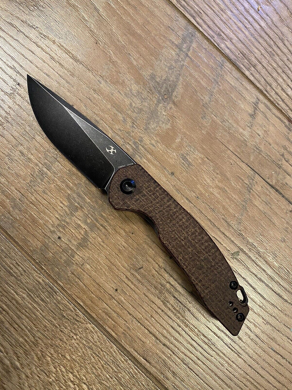 Kansept Mini Accipiter Front Flipper - Brown Micarta (3" 154CM Blk SW) T2007A3